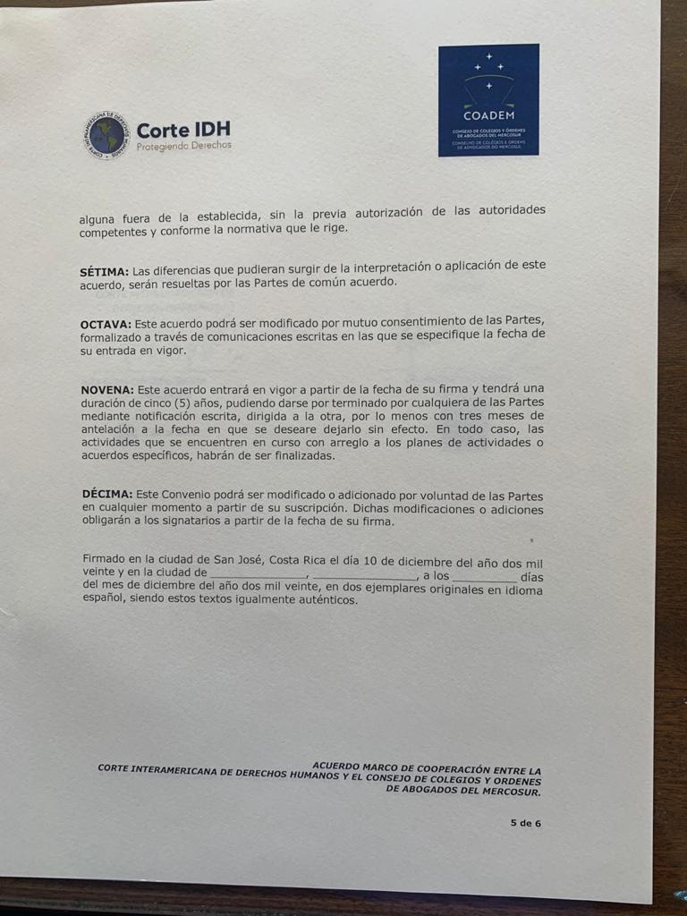 Firma Acuerdo Marco de Cooperación entre La Corte Interamericana de Derechos Humanos y el Consejo de Colegios y Ordenes de Abogados del Mercosur